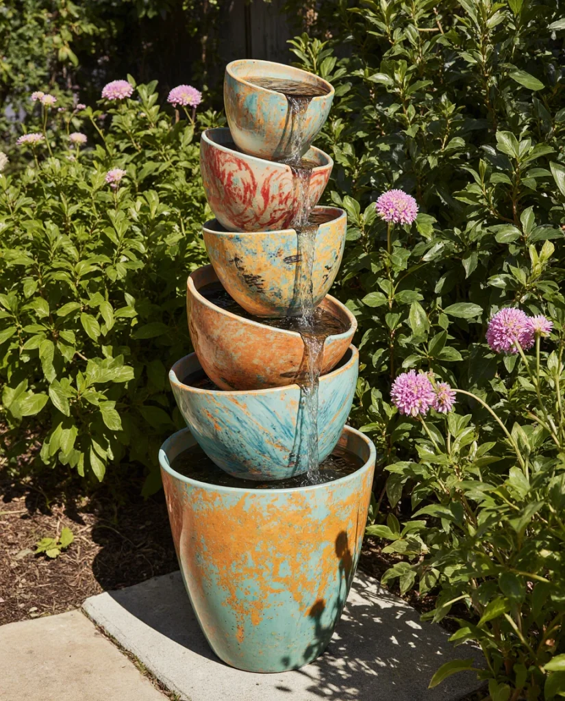 18. DIY Painted Pot Stack Fountain