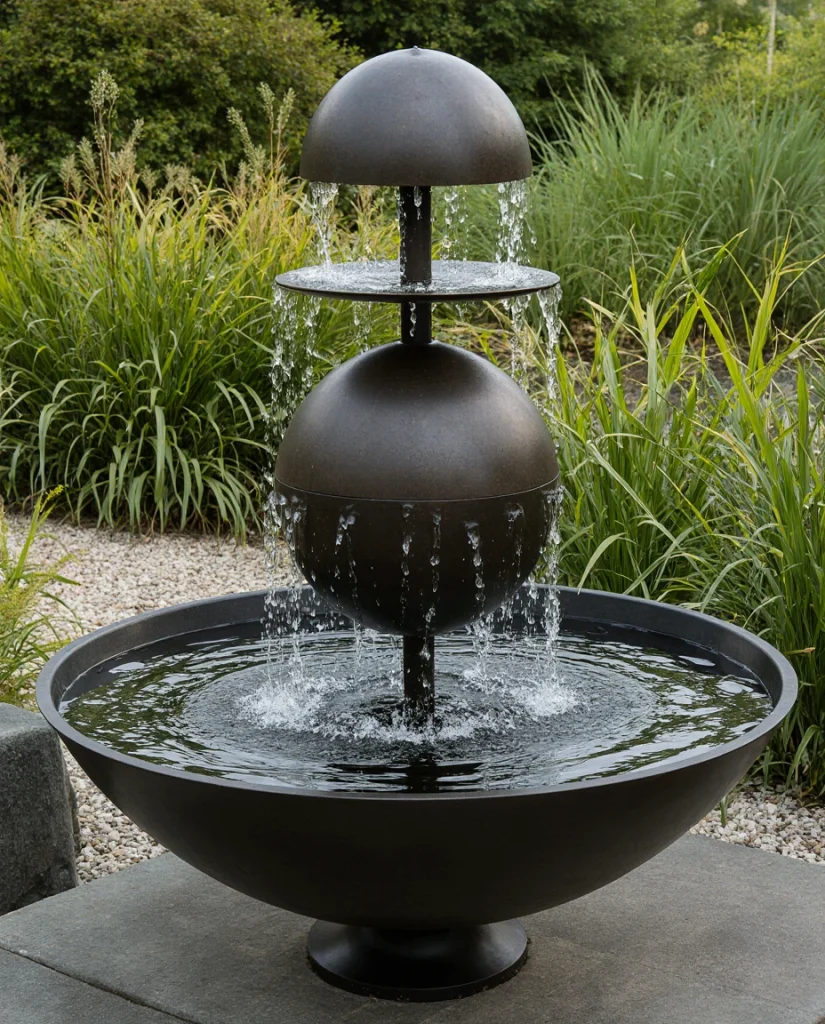 20. Metal Sphere Fountain for Sculptural Appeal