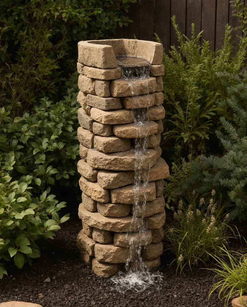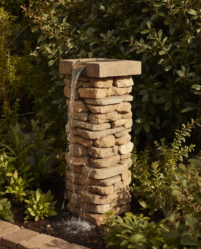 6. Rustic Stone Column Fountain for Cozy Gardens
