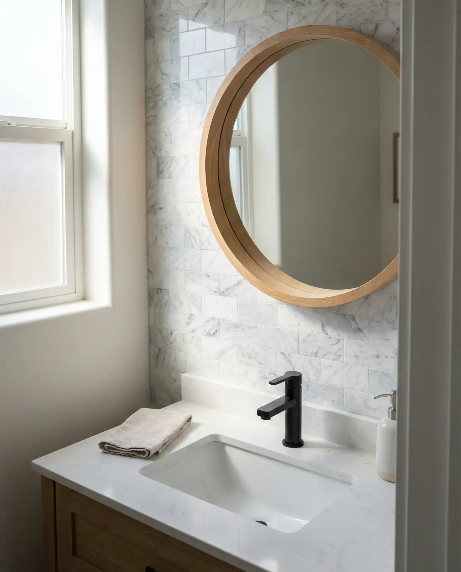 A western-inspired bathroom gains instant character through hammered copper sinks, aged bronze faucets, and wrought-iron towel bars that reference frontier utility. Pair these fixtures with natural stone tile, weathered wood vanities, and simple white subway tile to create a space that feels both rustic and refined. The warm tones of copper complement the natural materials beautifully while providing the antimicrobial properties that make copper inherently practical for bathroom environments. Consider adding vintage-style mirrors with iron frames and Edison-bulb sconces for authentic period lighting.