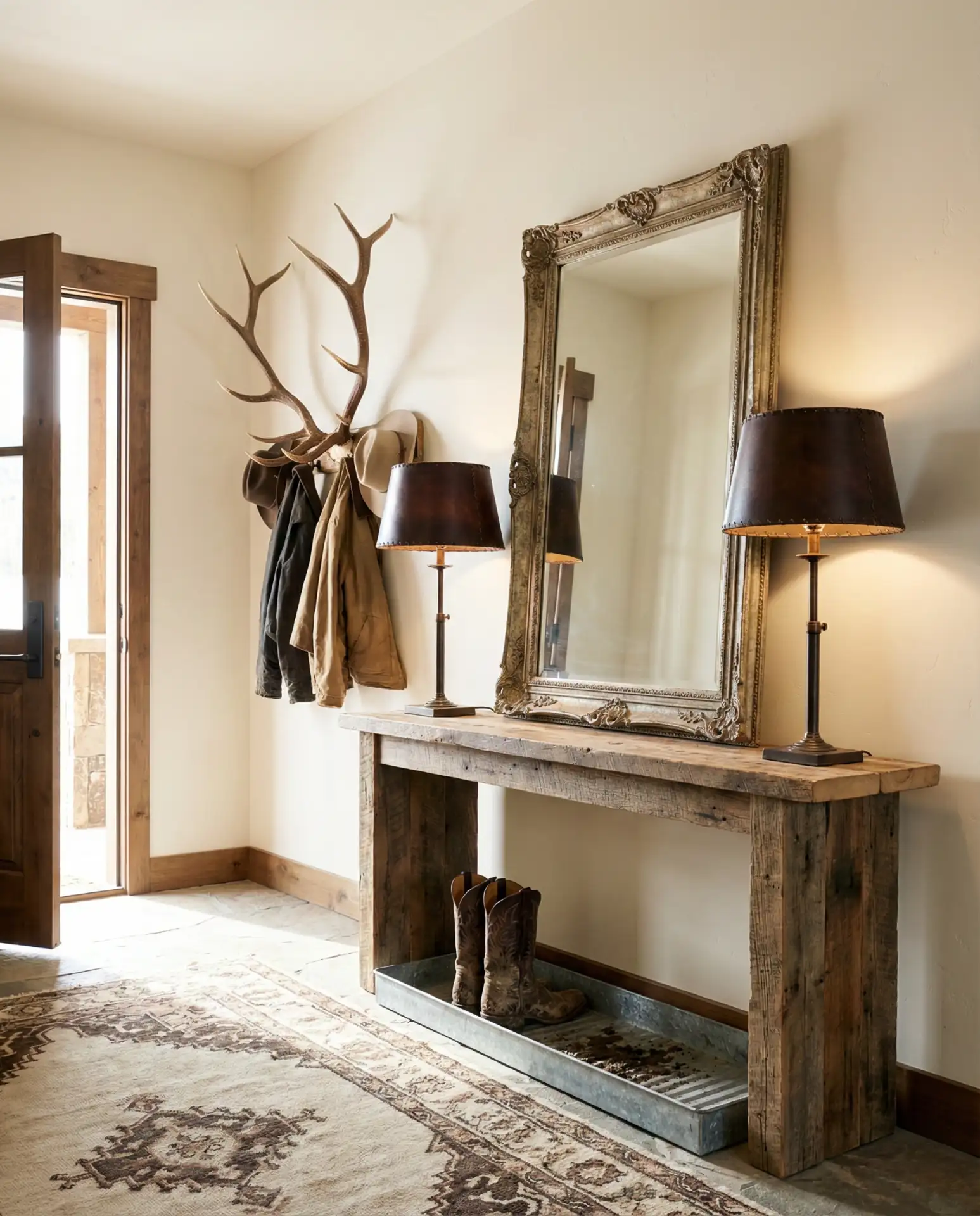 Throughout Arizona, New Mexico, and Southern California, homeowners favor this approach because it communicates western identity without appearing too casual or theme-park-like when guests arrive. The classy entryway makes particular sense in homes where the western aesthetic might not extend throughout the entire house, serving as a transitional space that sets the tone without overwhelming. Antique stores specializing in architectural salvage often carry the exact type of oversized mirrors and console tables that anchor these spaces successfully.